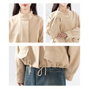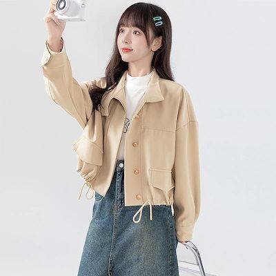 LA PELLEアウター 2024 春秋新作 ラペル ドローストリング ショート ワークウェア ジャケット レディース 学生 ルーズ カジュアル 小さい ジャケット トップス 韓国ファッション | DOKO-ME