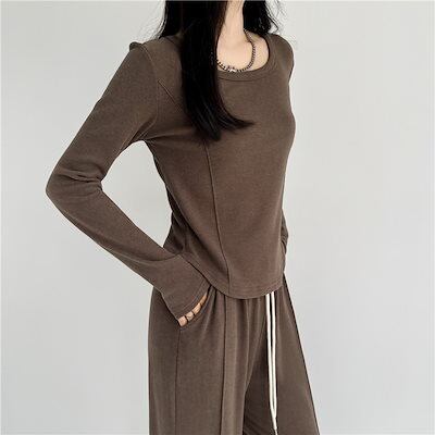 セットアップ 2024 のんびり 甘い 秋 長袖 ラウンドネック スーツ ゴム入り ワイドパンツ 韓国ファッション