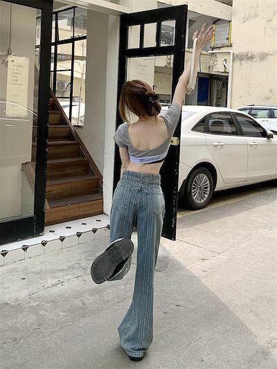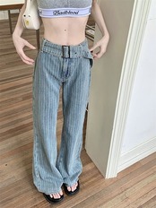 激?れ人気商品 脚長効果!デニムパンツ かっこいい!スラックスパンツ ストレートジーンズ 春夏 ストライプ柄 ゆったり ワイドパンツ