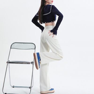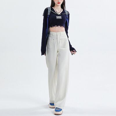 激?れ人気商品 脚長効果!デニムパンツ かっこいい!スラックスパンツ ストレートジーンズ 春夏 ハイウエスト ホワイト ゆったり ワイドパンツ