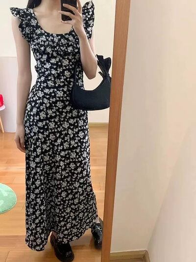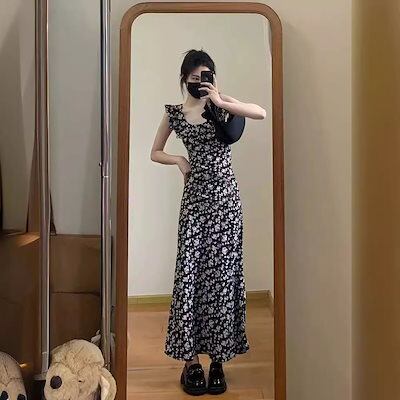 2024夏新品!!!夏 人気 韓国ファッション ロングワンピース ドレス フレンチ 花柄 ウエスト引き締め 通勤 通学