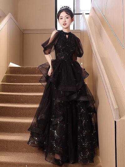 2024新品追加パーティドレス ブラック ワンピース 韓国ファッション 卒業式 結婚式 誕生日 演奏会 花嫁 司会 ホスト パーティー