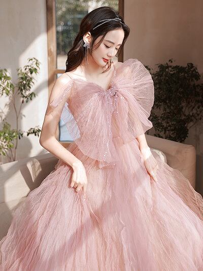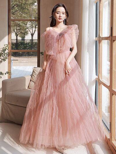 2024新品追加パーティドレス ピンクワンピース 韓国ファッション 卒業式 結婚式 誕生日 演奏会 花嫁 司会