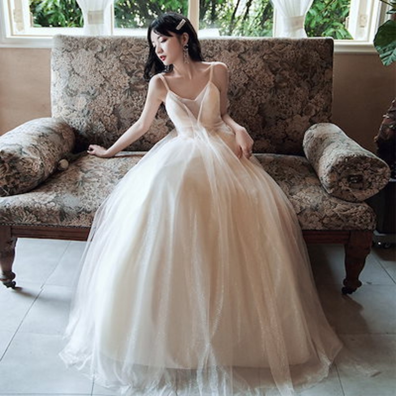 2024新品追加パーティドレス グレーグラデーションキャミソール ワンピース 韓国ファッション ロングドレス 結婚式 誕生日 演奏会 花嫁 司会
