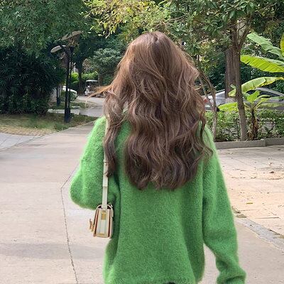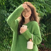 チェスターコート 2023年新作モチモチゆったりけだるい風グリーンニットコート女秋冬厚手高級感トップス