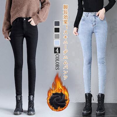 脚長効果! 厚手 裏起毛デニムパンツ ジーンズ レディース パンツ ワイドパンツ 脚長効果!スキニーデニムパンツ 裏起毛 韓国ファッション ズボン秋冬