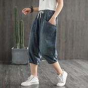 デニムパンツムスズボン ルーズプラスサイズハーレムパンツ ジーンズジョガーパンツジョガーパンツワイドパンツ