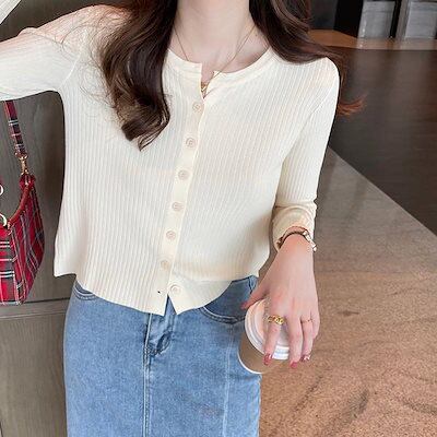 韓国ファッション 秋新作 カーディガン ベーシックニット 着痩せ ニットカーディガン ゆったりスウェットアウター 長袖トップス ニットセーター