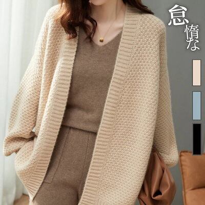 日系 怠惰な風 ニットカーディガン ゆったり百掛け 着痩せ セーター レディース 韓国ファッション 長袖 ニット 秋アウター カジュアルシンプルカーディガン