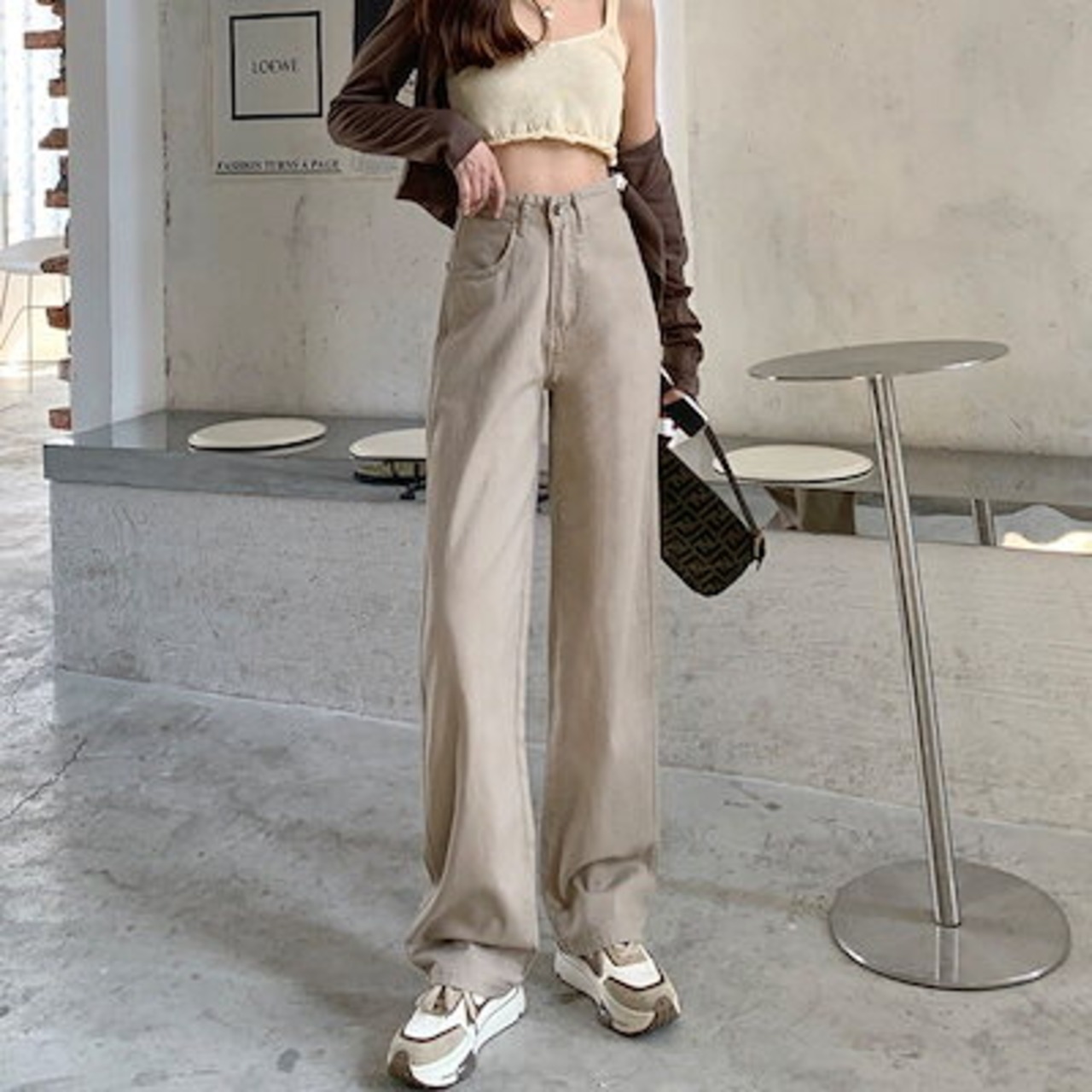かっこいい!スラックスパンツ人気スラックスパンツレトロジーンズ/ 着痩せ ハイウエスゆったりストレートデニムパンツズボン レディースデニムパンツ脚長効果スラックスパンツ脚長効果!スキニーパンツ | DOKO-ME