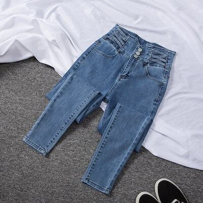 春 夏 レディース ハイウエスト ジーンズ ブルー ブラック 着痩せ 体型カバー ジーンズ ハイウエスト 体型カバー