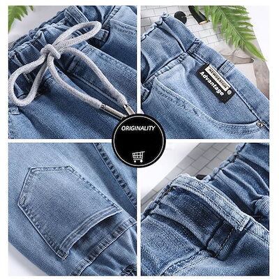 伸縮性のあるウエスト 着痩せ ジョガーパンツ サルエルパンツ デニムパンツ ロングパンツ 長ズボン 脚長効果