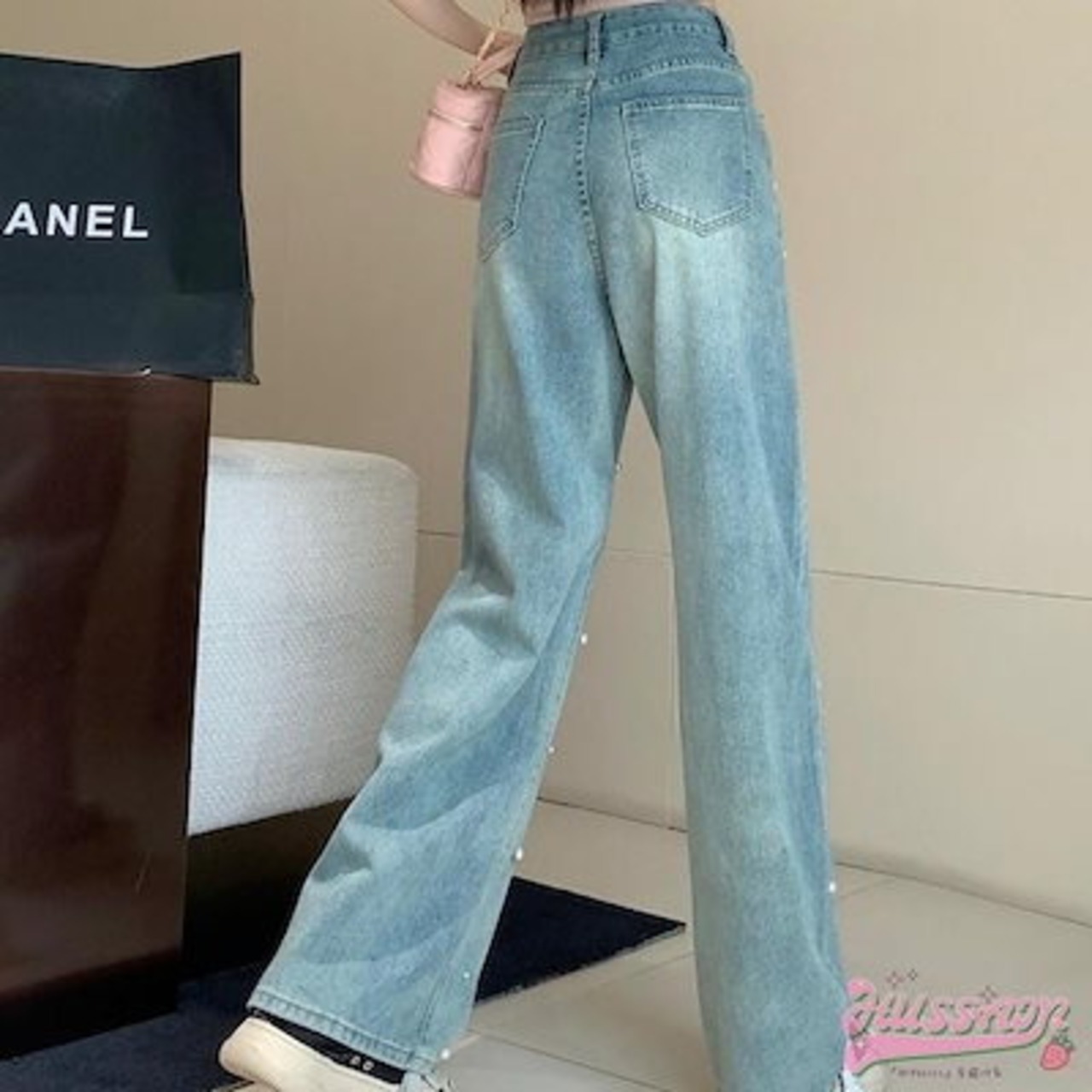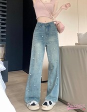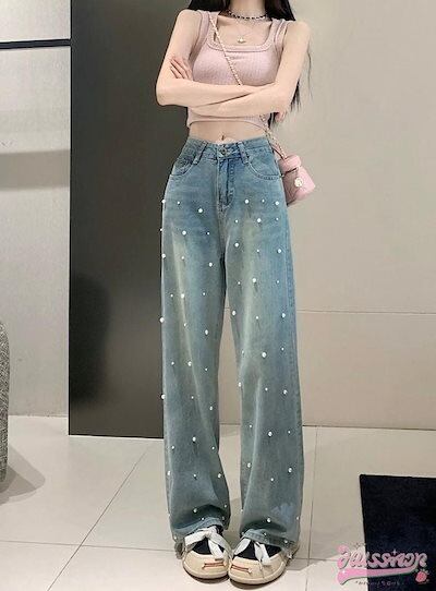 2024 春夏 パンツ デニム ジーンズ スキニー レッグ 脚長効果 ハイウエスト 美脚効果 細見え 春 水色 ライトブルー ストリート系 カジュアル ズボンファッション デザインお出かけ | DOKO-ME