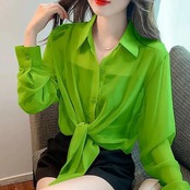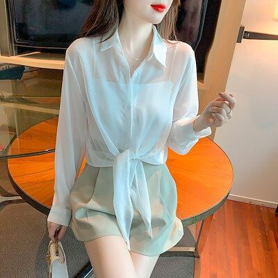 フランス語 シフォン アイスシルク サンシャツ 夏 新しいスタイル ネクタイ エアコンシャツ ジャケット