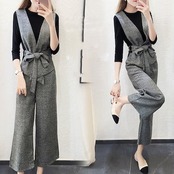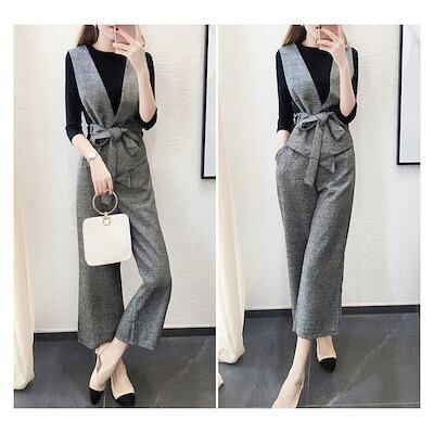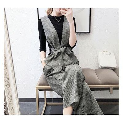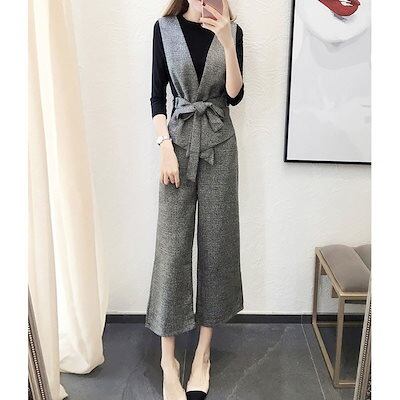 セットアップ 3点セット レディース 上下セット OL フォーマル ガウチョパンツ ウエストベルト