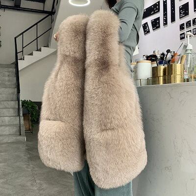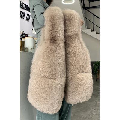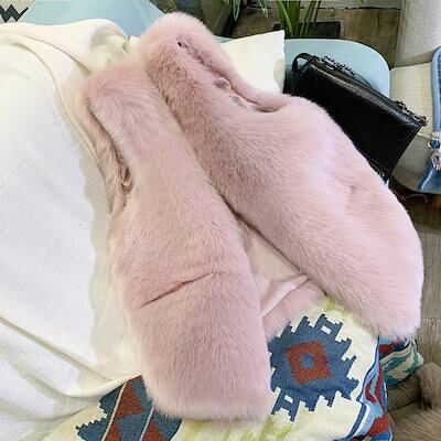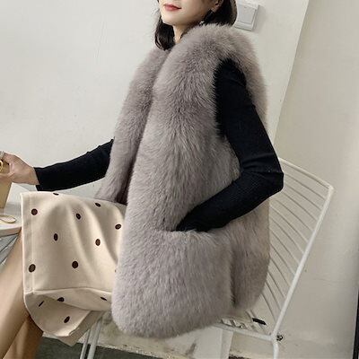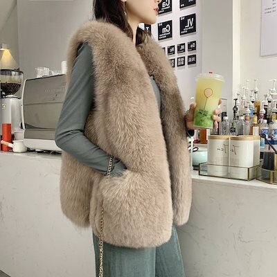 フェイクファーベストレディースベスト大きいサイズ体型カバー 秋冬ファーポッケ付きおしゃれ防寒カジュア