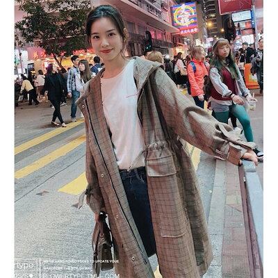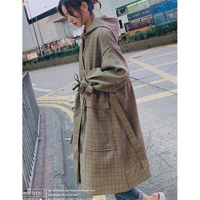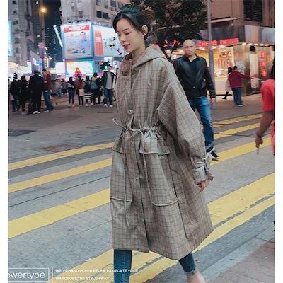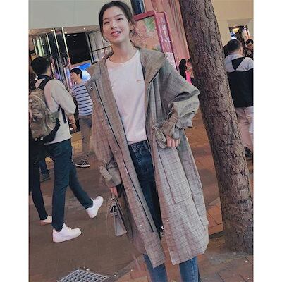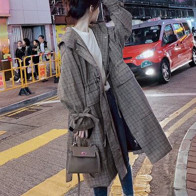 トレンチコート レディース チェック柄 スプリングコート 秋 ロング チェックトレンチコート 体型カ