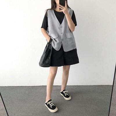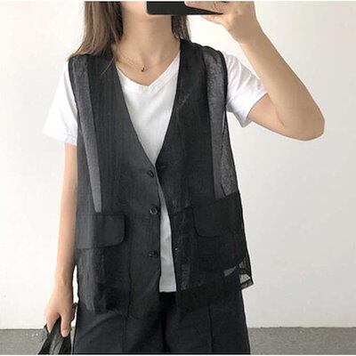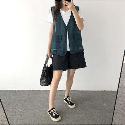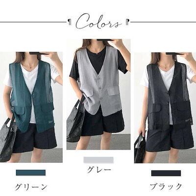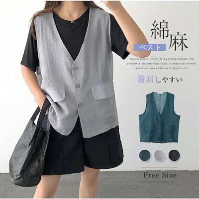 ベスト レディース おしゃれ サマーベスト ジレ ジレベスト 春夏 Vネック 綿麻風 羽織 前開きベスト カジュアル 無地 レイヤード ベスト きれいめ