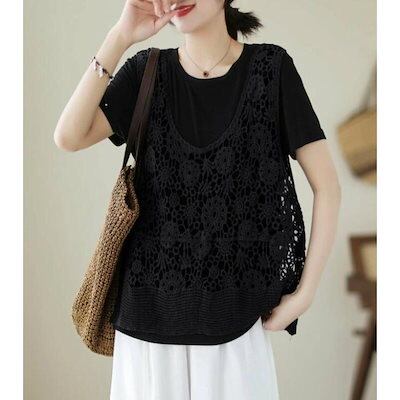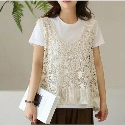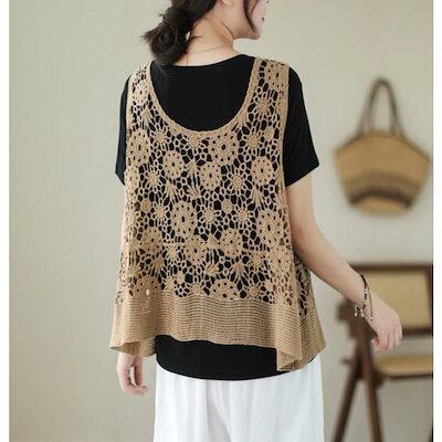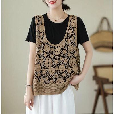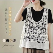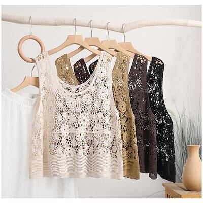 透かし編み ベスト レディース 春 夏 ニットベスト かぎ編み 涼やか カジュアル レイヤード ニットベスト ノースリーブ サマーニット おしゃれ きれいめ