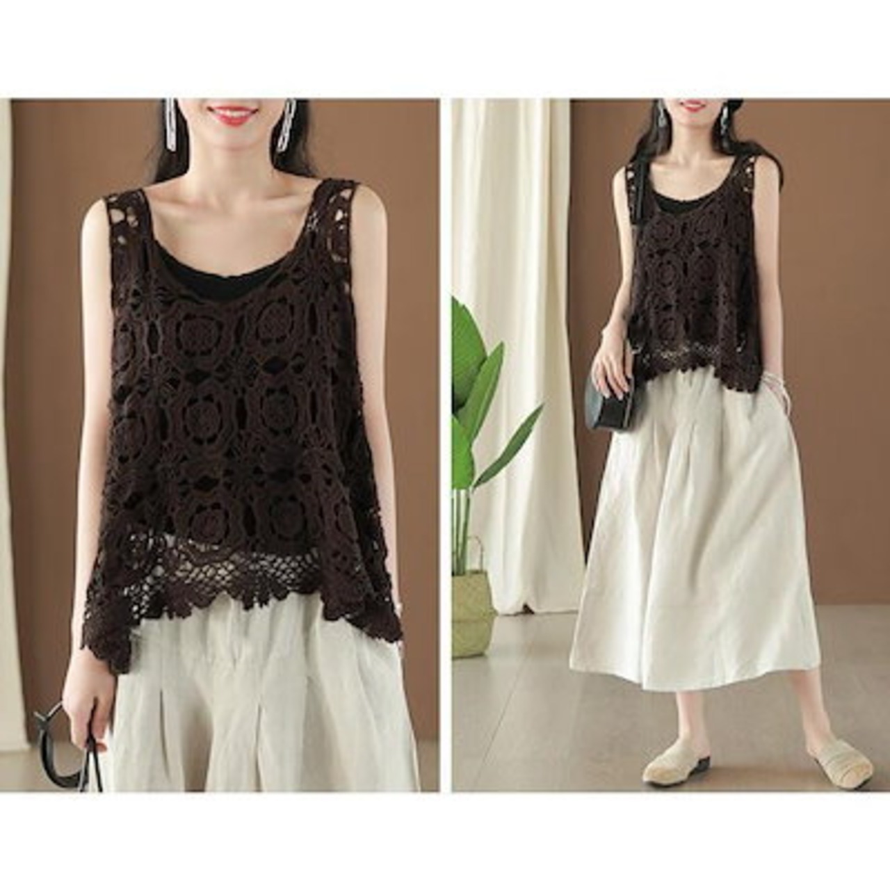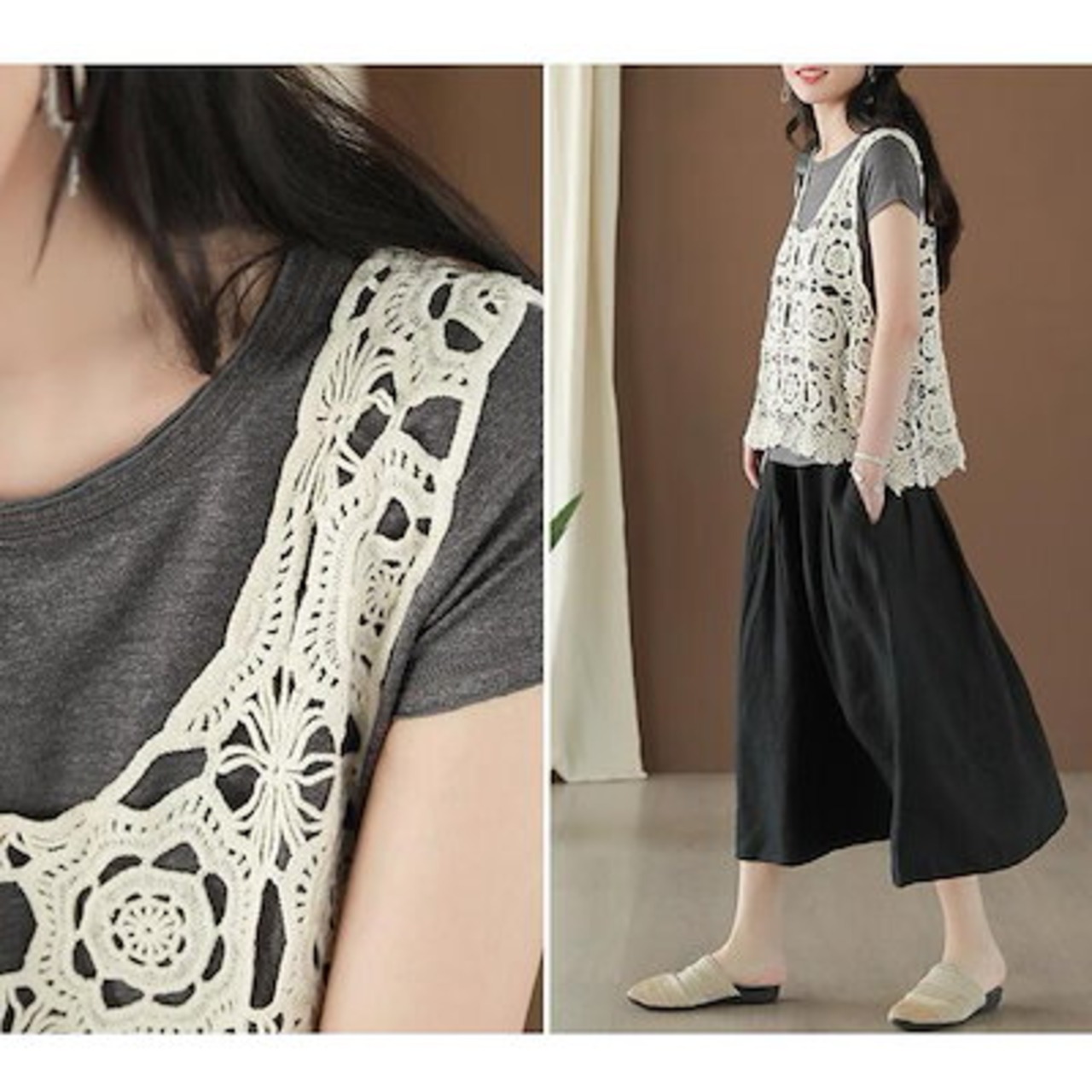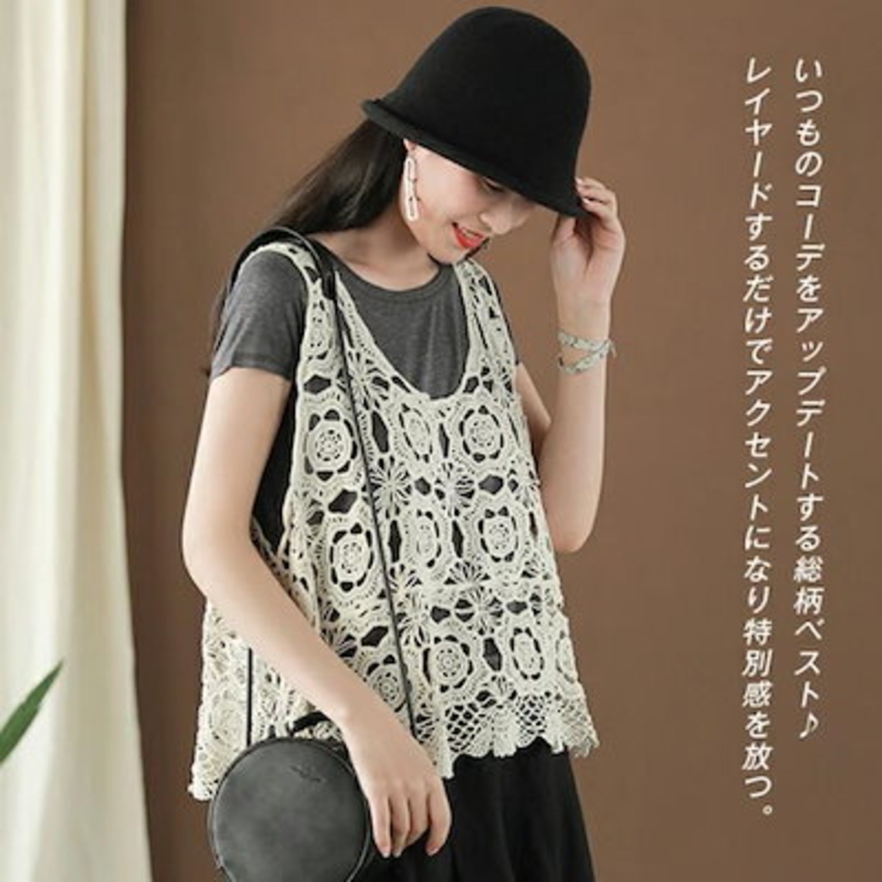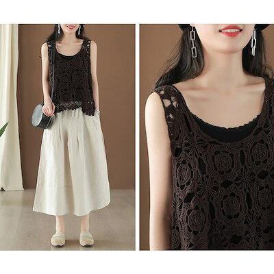 ベスト レディース 春夏 レースベスト おしゃれ 重ね着 花柄 プルオーバー コーデ おしゃれ レース刺繍 かわいい タンクトップ レース きれいめ