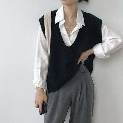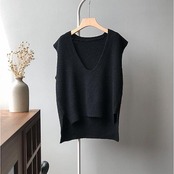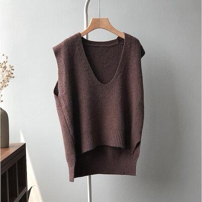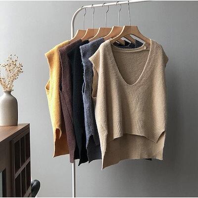 ニットベスト レディース 40代 春秋冬 ベストセーター ノースリープ 無地 Vネックニットベスト カジュアル韓国風 ゆったり 通勤 着痩せ 体型カバー 秋服