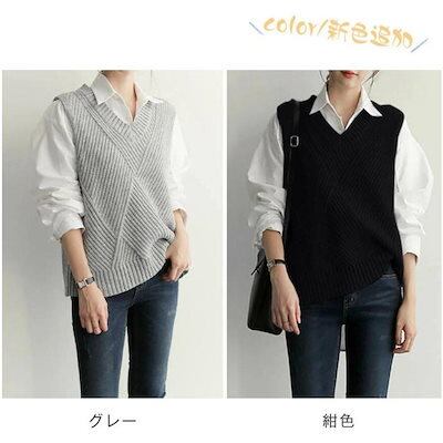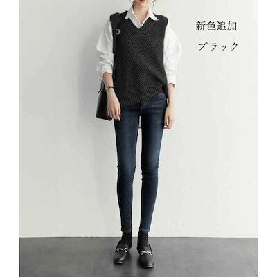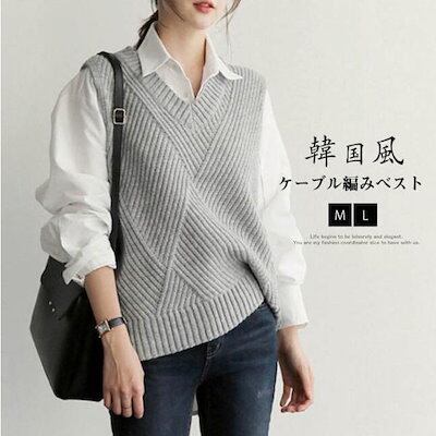 ニットベスト レディース Vネック ケーブル編み トップス ベスト ニット チョッキ ノースリーブ シンプル 体型カバー セーター 通勤 春 秋 冬 柔らかい