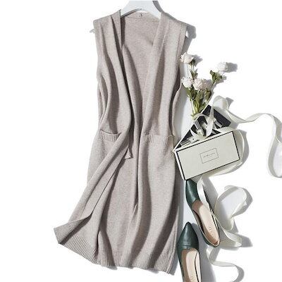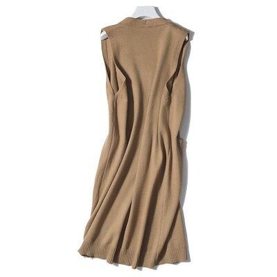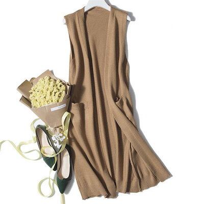 ニットベスト レディース ノースリーブ ロングジレ トレンチベスト ジレンチ トップス ロングベスト ノースリーブ ジレ 秋 冬 前開きベストジレ