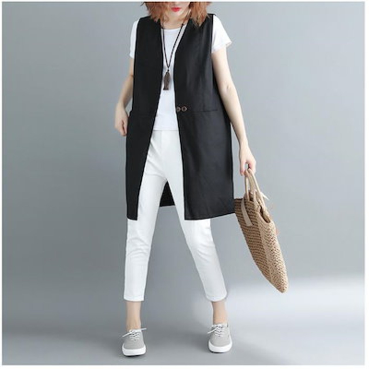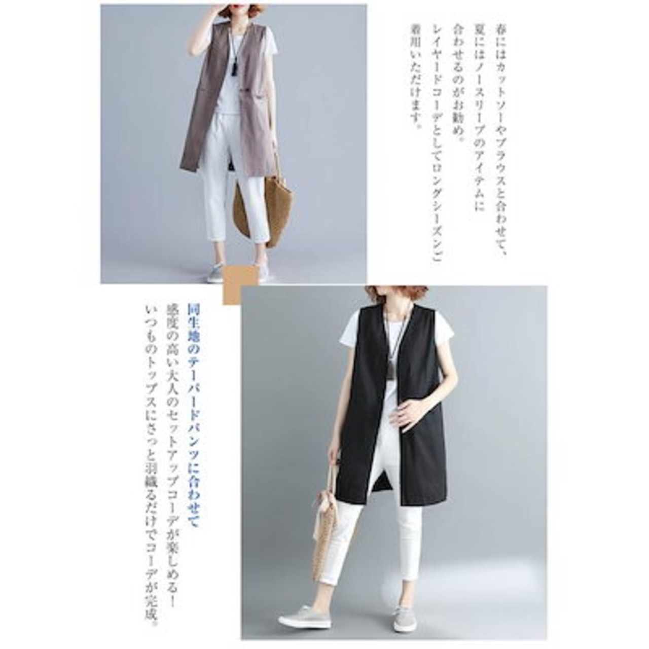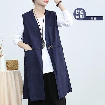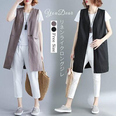 ベスト レディース 春 リネンライクロングジレ ジレ ロングコートノースリーブ ロングジレ トレンチベスト 無地 綿麻 ロングベスト夏 大きいサイズ