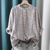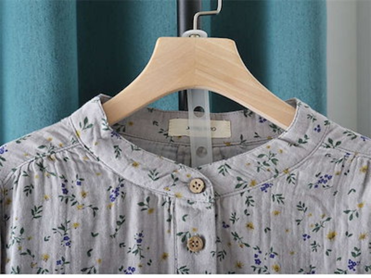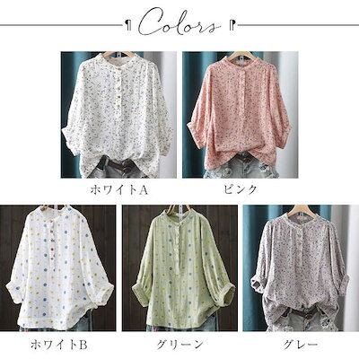 ダブルガーゼ シャツ シャツブラウス レディース 花柄 ドット柄 2重ガーゼ シャツ ブラウス 七分袖 トップス 羽織り ガーゼ カジュアル 立ち襟 ダブルガーゼ 大きいサイズ 体型カバー 柔軟 通勤 | DOKO-ME