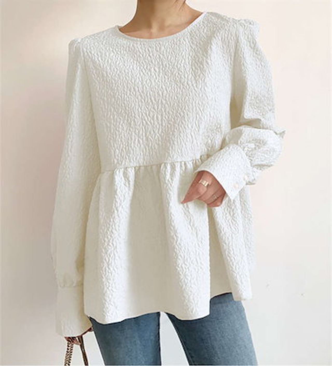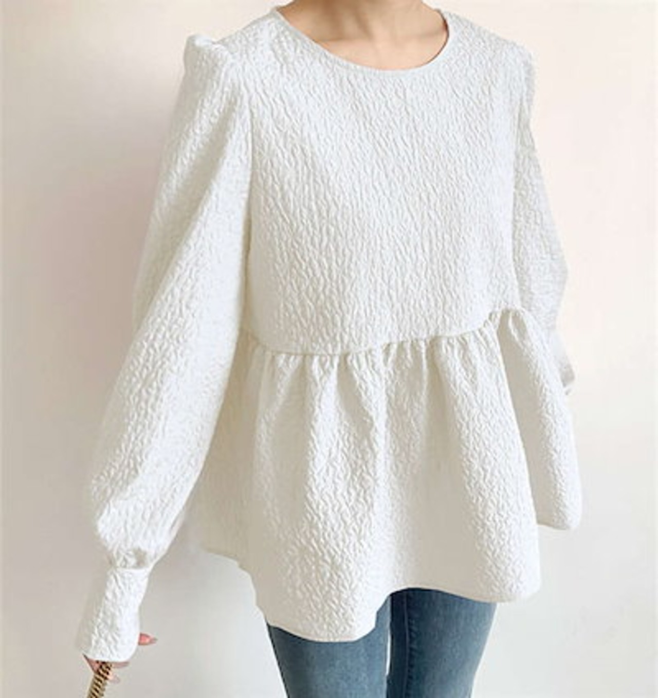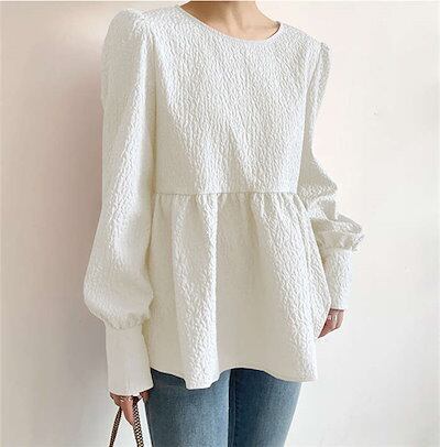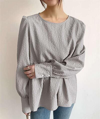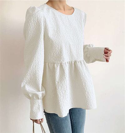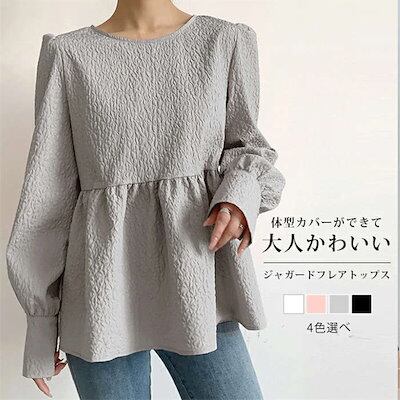 ブラウス シャツ レディース 秋 長袖 ボリューム袖 ジャガードブラウス エンボス加工 Aライン バックリボン トップス ゆったり 大きいサイズ デザイン きれいめ おしゃれ お洒落 大人可愛い カジ | DOKO-ME