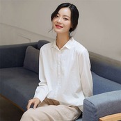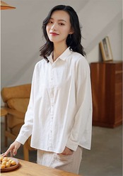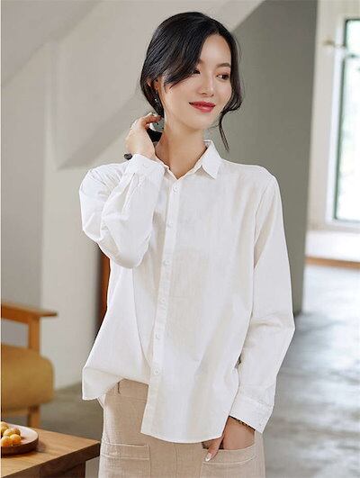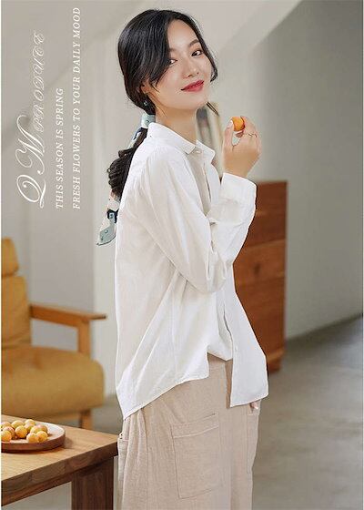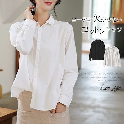 コットン シャツ レディース ブラウス 長袖 綿 とろみブラウス スーツ インナー ワイシャツ 白 ホワイト 柔らか オリジナル 無地 可愛い ナチュラル 春 夏 秋 無地 大人かわいい コットン シ | DOKO-ME