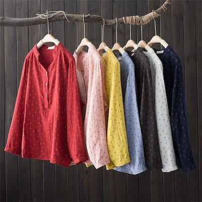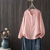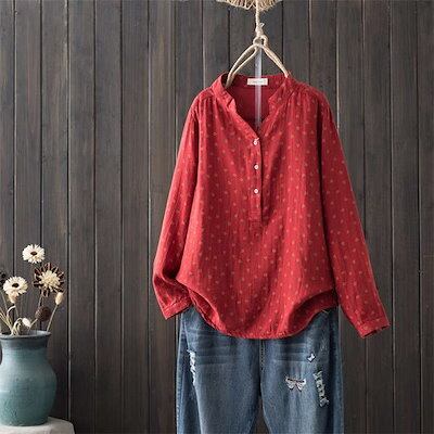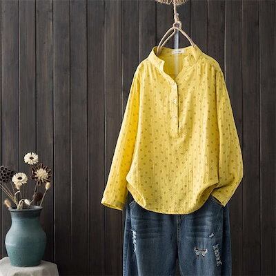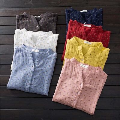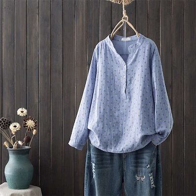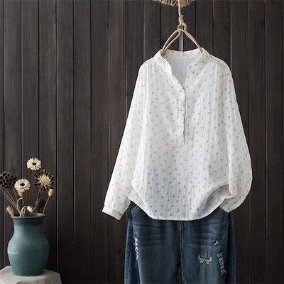 ガーゼ シャツ Tシャツ ブラウス レディース ガーゼシャツ 綿シャツ 花柄 立ち襟 トップス 長袖 綿 ゆったり キレイめ ゆるシルエット フォーマル エレガント 柔らか ダブルガーゼ カジュアル | DOKO-ME