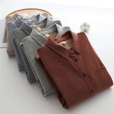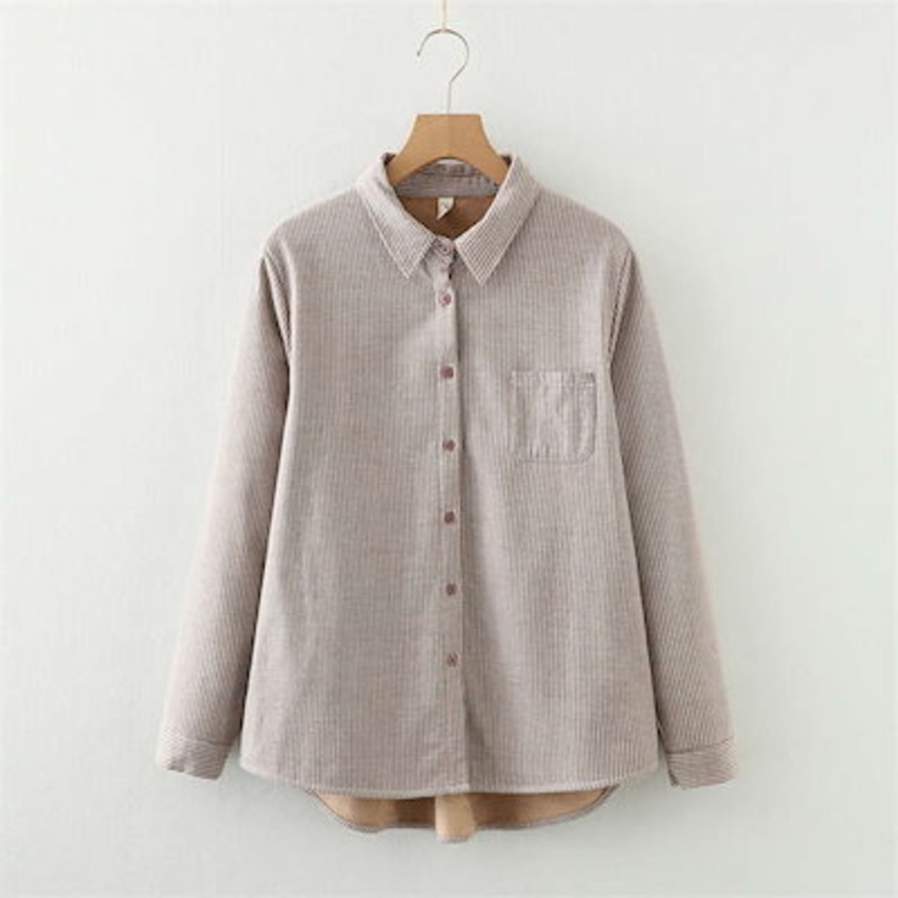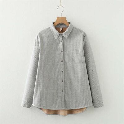 シャツ 秋冬 長袖シャツ レディース ストライプ柄 綿シャツ 防寒 裏ボア トップス ブラウス シャツブラウス 暖かい 大きいサイズ チュニック コットンシャツ 暖か カットソー 重ね着 冬 柔らかい | DOKO-ME