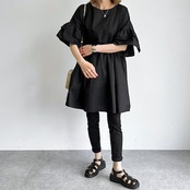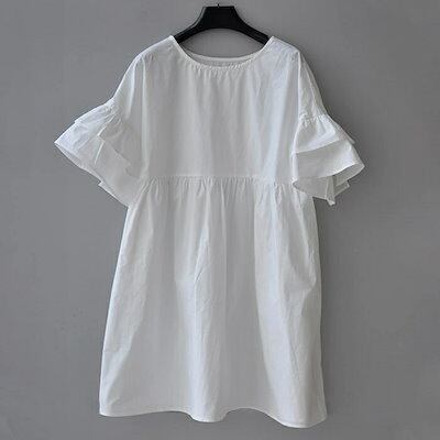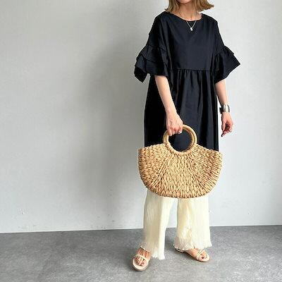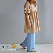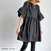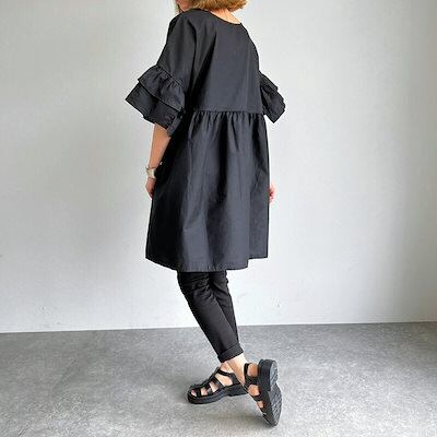 ブラウス Tシャツ レディース チュニック 半袖 春 夏 秋 フレア袖 大きいサイズ ゆったり ロンT ブラウス オシャレ ワンピース ショート丈 カジュアル ウエストギャザー 着回し 体型カバー ゆ | DOKO-ME