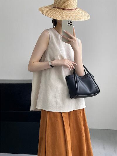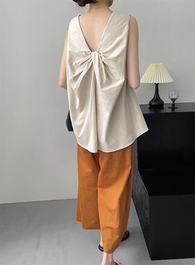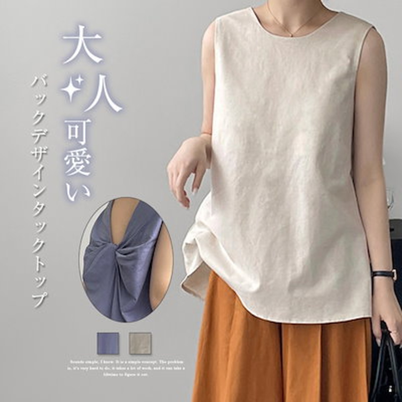 綿麻 タンクトップ レディース ノースリーブ 夏 トップス ブラウス バックデザイン 春 夏 プルオーバー 薄手 コットン リネン タンクトップ 大きいサイズ 通勤 無地 シンプル 大人可愛い 着回し | DOKO-ME