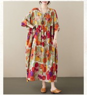 マキシワンピース 大きいサイズ 夏 レディース ドット 水玉柄 半袖 ゆったり ロングワンピ 総柄 ロング丈 キレイめ フレア 大人可愛い ゆったり 体型カバー ナチュラル 着痩せ リゾートワンピース | DOKO-ME