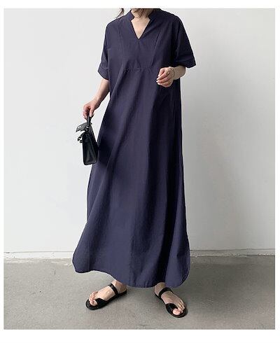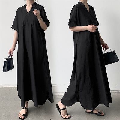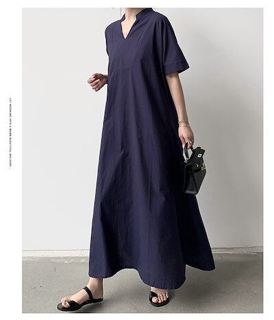 シャツワンピース 半袖 ロングワンピース レディース 夏 Aライン マキシ丈ワンピース シャツワンピース 大きいサイズ フレアワンピース 前開き ロング丈 マキシワンピース キレイめ カジ | DOKO-ME