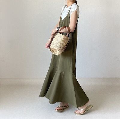ジャンパースカート マーメイドワンピース マキシ丈ワンピース 夏 レディース ロングワンピース キャミワンピース きれいめ ロング おしゃれ ワンピース 大きいサイズ ゆったり キャミ 無地 大人カジ | DOKO-ME