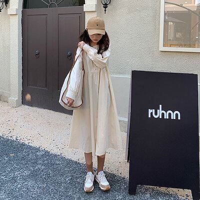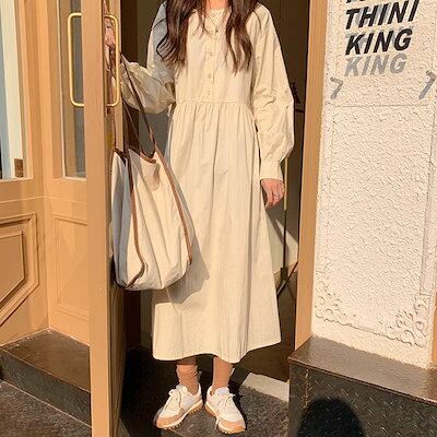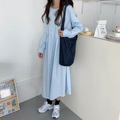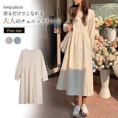ワンピース レディース ゆったり ロング チュニック 長袖 ワンピ チュニックワンピース カジュアル 重ね着 無地 シンプル 春 秋 冬 ベージュ ブルー