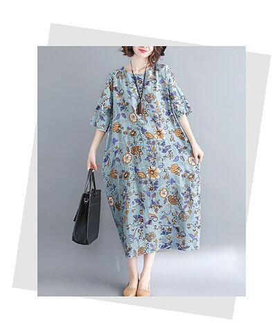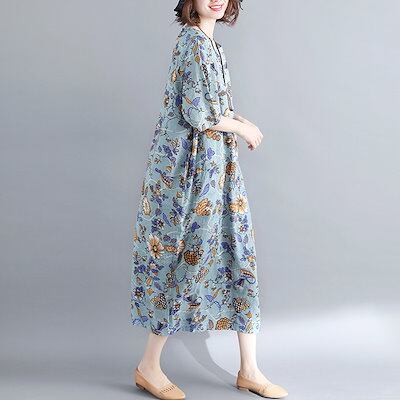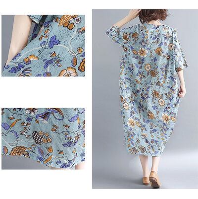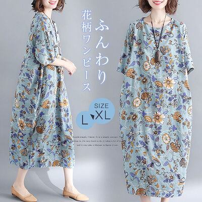 ワンピース 半袖 春 夏 ロングワンピース 大きいサイズ 花柄 総柄 ミモレワンピース 小花柄 ミモレ丈 ワンピース ロングワンピ ゆったり ふんわり リゾートワンピース きれいめ 柔らか 体型カバ | DOKO-ME