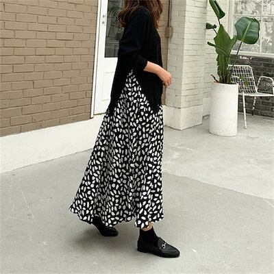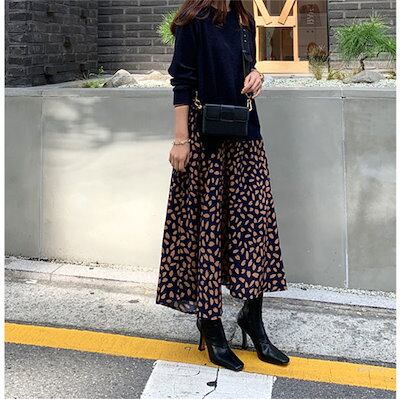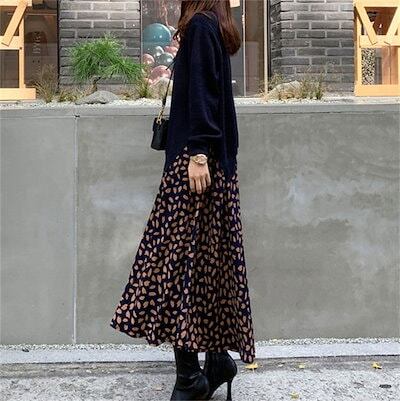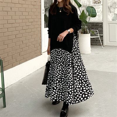 ワンピース 異素材 レディース 春 大きいサイズ 長袖 花柄 切替 レイヤード風 ロングワンピース 重ね着風 ドッキング ミモレ丈 秋 冬 ワンピース ワンピ ゆったり フレア 体型カバー カジュアル | DOKO-ME