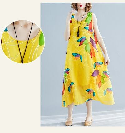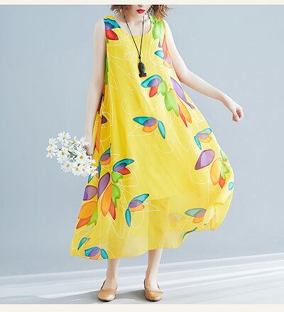 ワンピース レディース リゾートワンピース ノーカラー ノースリーブ リゾートワンピ ハワイアン 夏 ロングワンピース ミモレワンピ リゾート リゾート ワンピース ロング丈 大人 | DOKO-ME