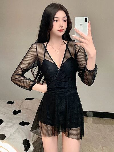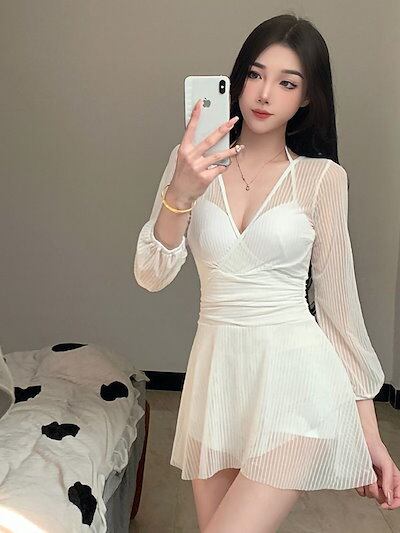 水着 女性 夏 2024 新作 ワンピース スカートタイプ 薄手 コンサバ レース 長袖 スパ水着