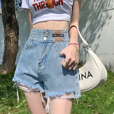 ショートパンツ 韓国版デニムショートパンツ女性の夏2024新しいハイウエストの薄いカジュアルなワイド脚ショーツ