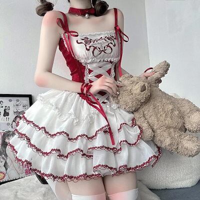 2024 ロリータ ドレス 美少女レース接ぎウエストリボンキャミソールワンピース コスプレ ワンピース ロリータワンピース