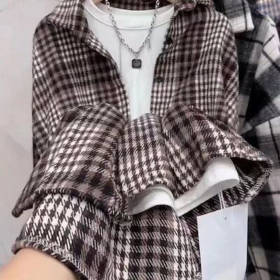 シャツ 長袖 2024 秋 新ブラウス 秋冬新作シャツジャケットのロングセクションのツイードチェックシャツ女性ルーズ