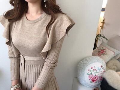 秋冬 新作 おしゃれ ニットワンピース レディースワンピース 気質 高級感 丸ネック セーター ロングワンピース トップス 韓国ファッション