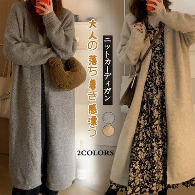 怠惰な風 秋冬気質 アウター ロング丈 無地 マキシ丈 通勤 おしゃれ ベーシックニット ニットカーディガン セーター トップス 韓国ファッションカシミヤタッチ 福袋