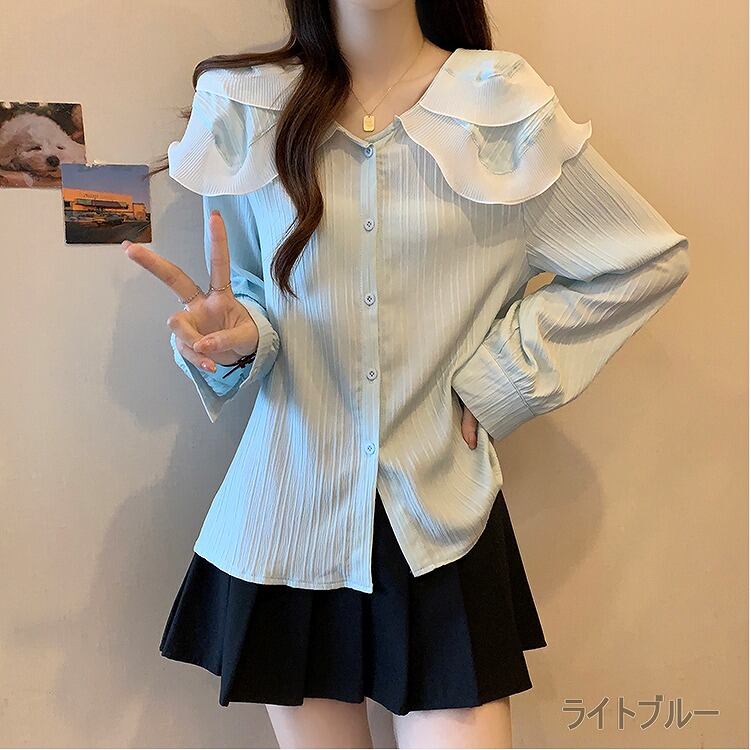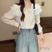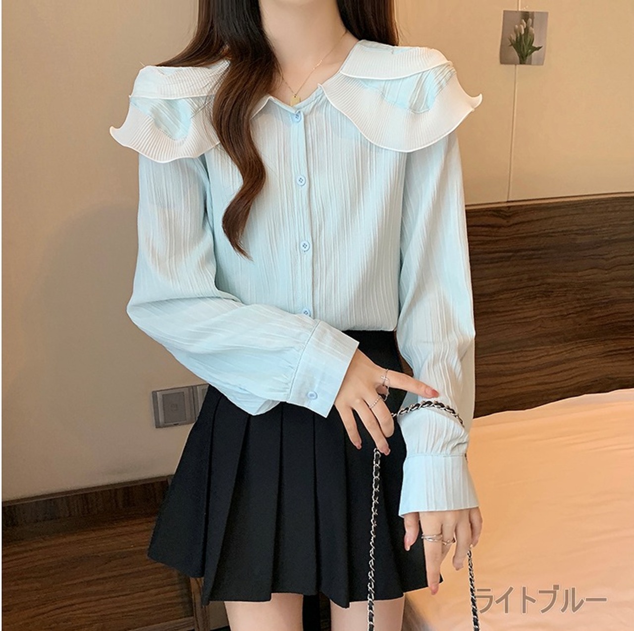 【大きいサイズL-4XL】【秋冬新作】ファッショントップス♪ホワイト/ライトブルー2色展開◆