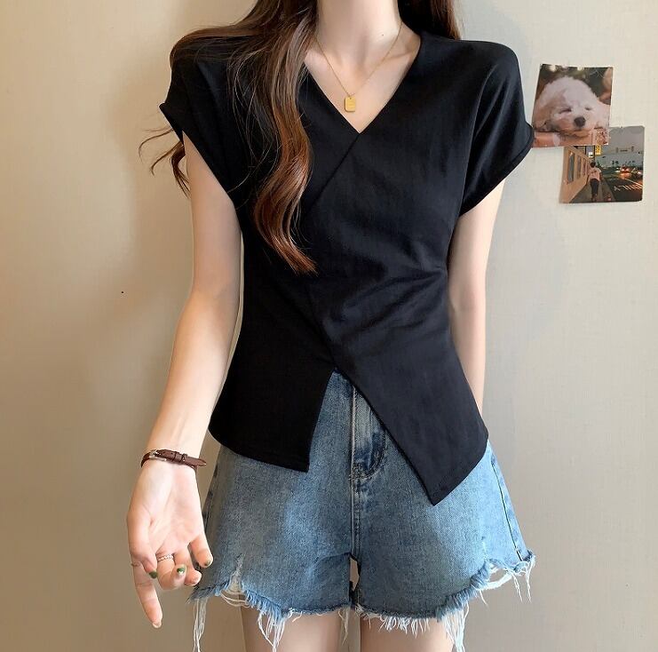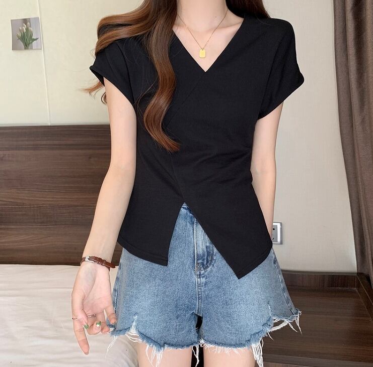 【大きいサイズM-4XL】【春夏新作】ファッショントップス♪アンズ/ブラック2色展開◆